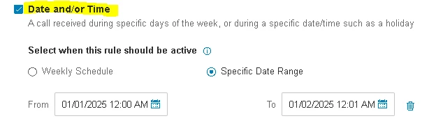 In the Auto-Attendant, Call Handling, Custom Rules - you can specify a date or time, but the dates are non-recurring.