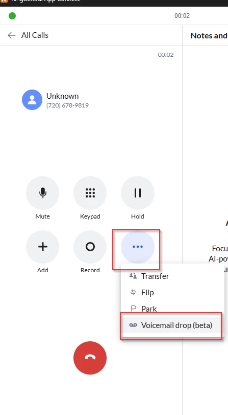 Voicemail Drop: Boost productivity by pre-recording messages and dropping them instantly, allowing you to move immediately to your next call while RingCentral waits for the beep.