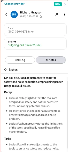 Right now, AI Notes are visible directly within the CTI panel and our HubSpot integration, so users can easily access and review them during or after a call.