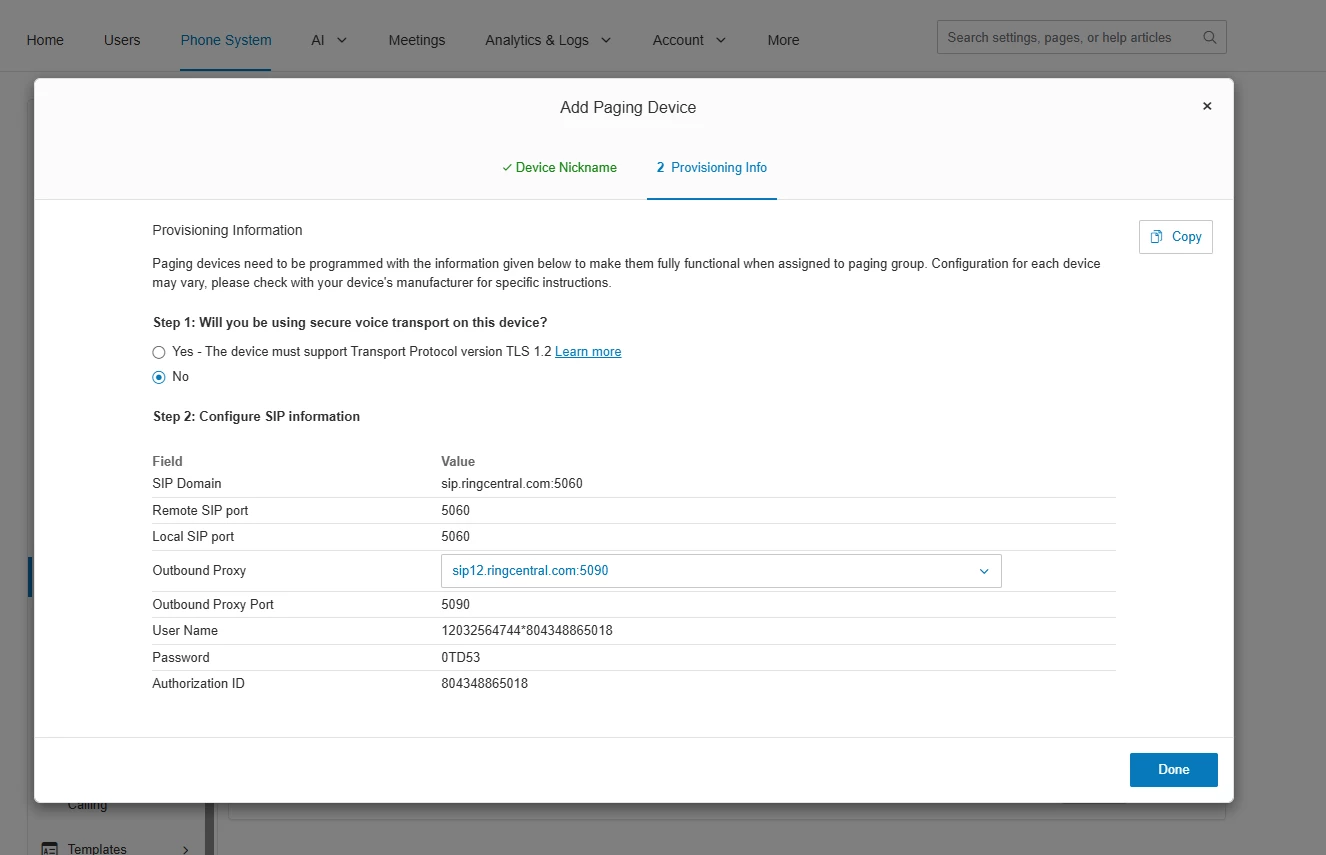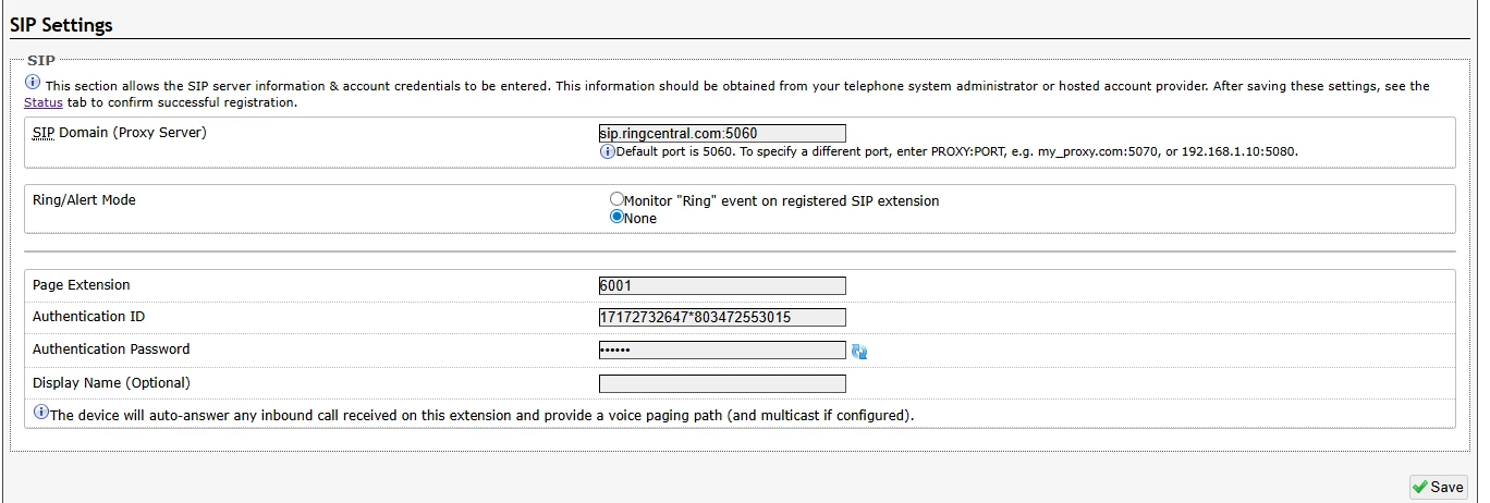 Trying to setup the page extension in the Basic Settings with the info given by Ring Central. I keep getting no reply from server under the SIP Registration under Status. Any guidance would be greatly appreciated.