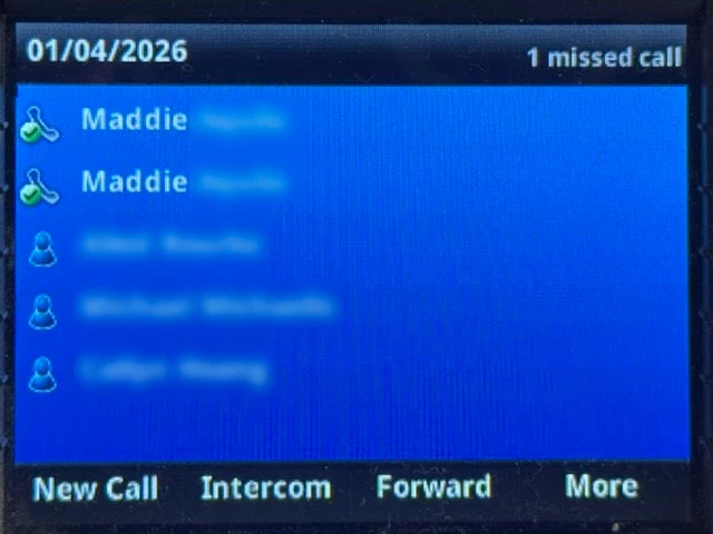 By default, Polycom phones are configured to show the user's name on all available line appearances. Since RingCentral reserves two "slots" for the user, your name appears twice.