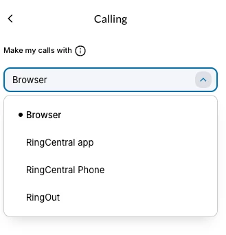 • Allows users to choose their preferred calling method, including the RingCentral Desktop App, Deskphone, or Browser Dialer.